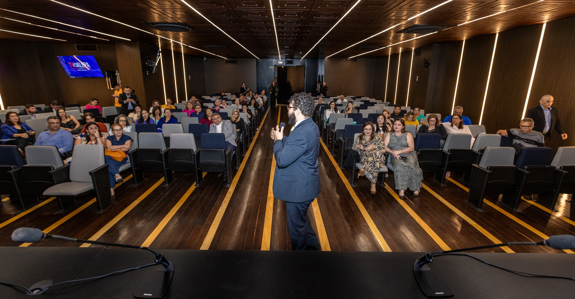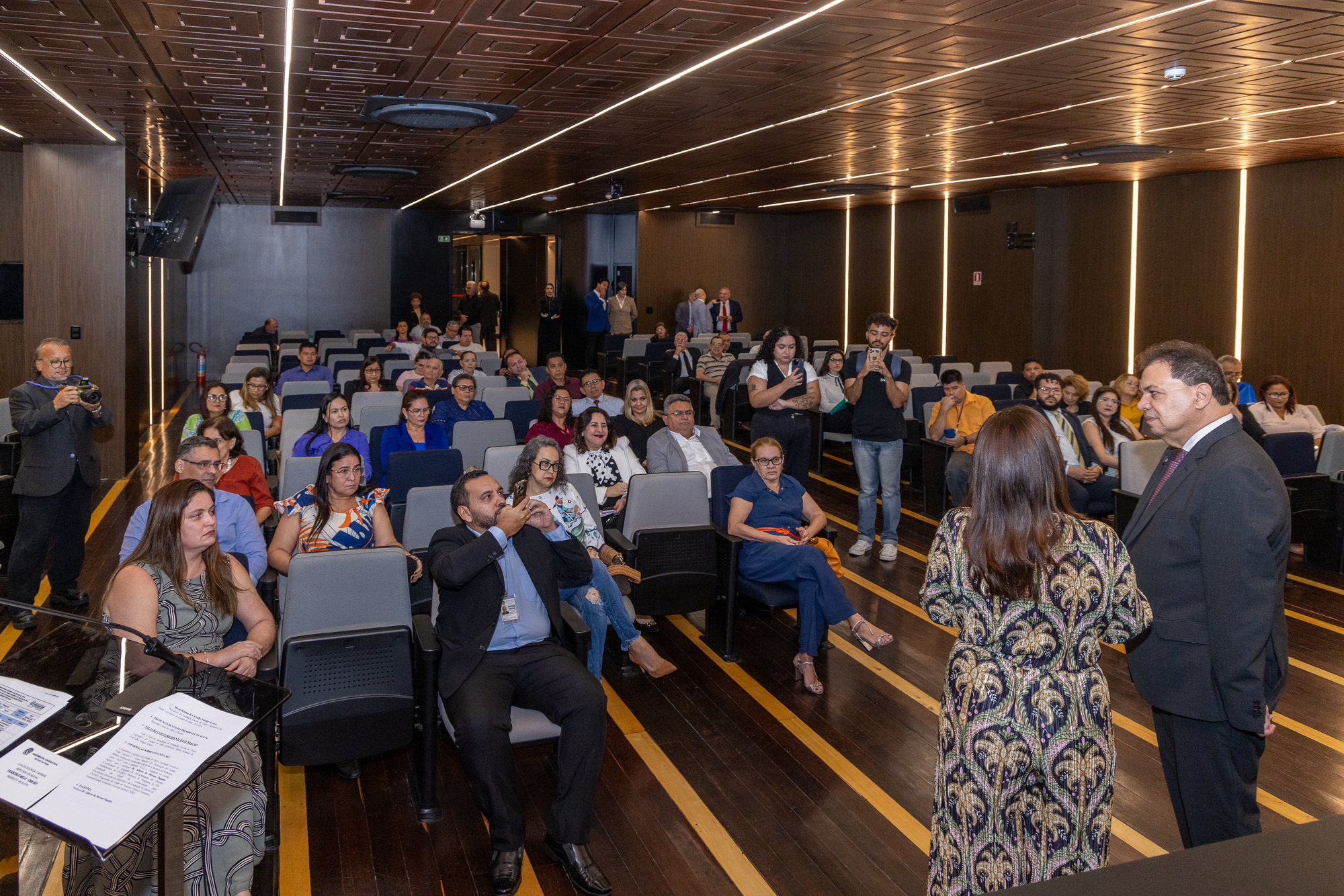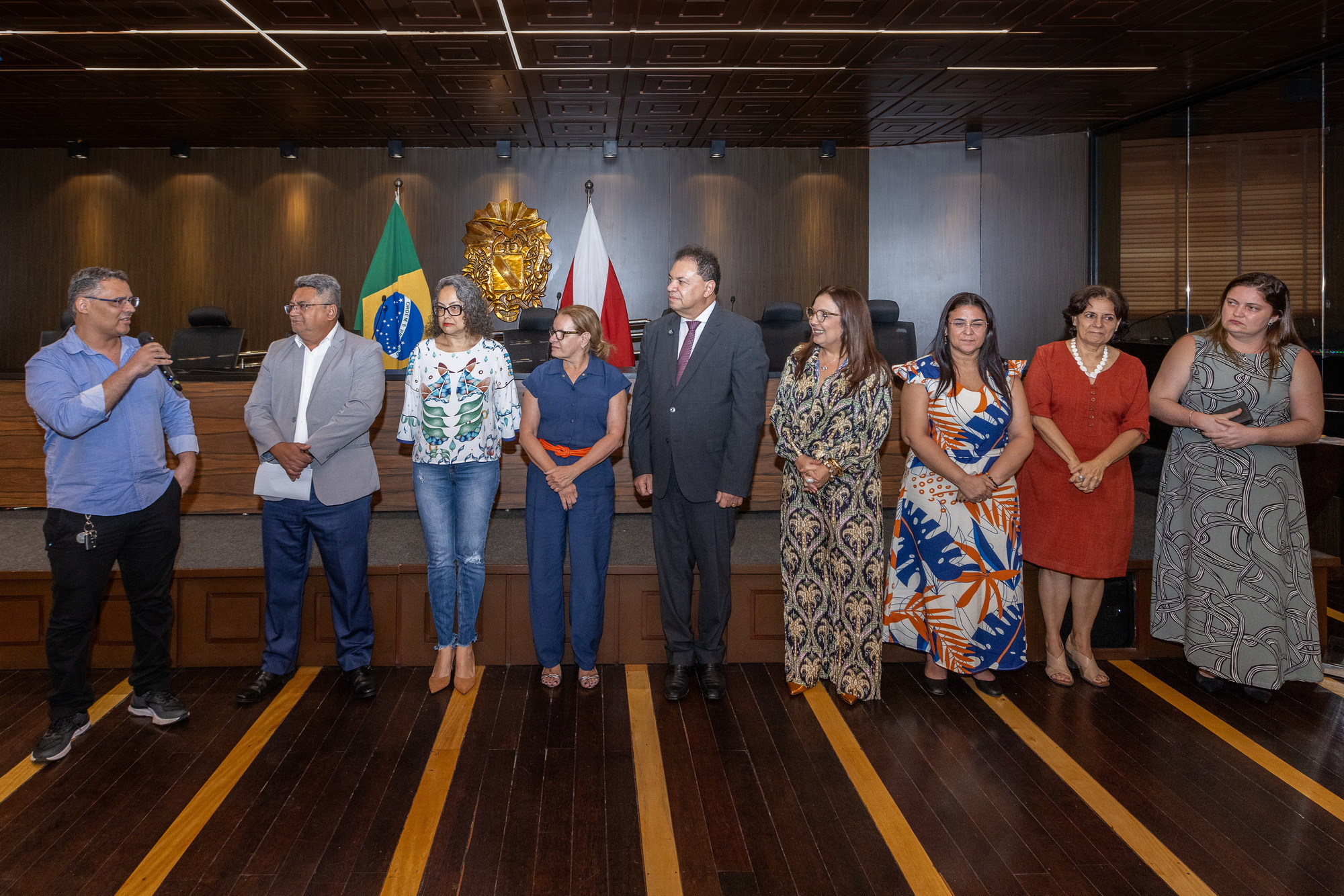 A solenidade foi realizada no auditório João Batista e teve a presença do presidente da Assembleia Legislativa do Pará (Alepa), deputado Chicão (MDB), além de Betânia Fidalgo, presidente da Felepa, e professores.