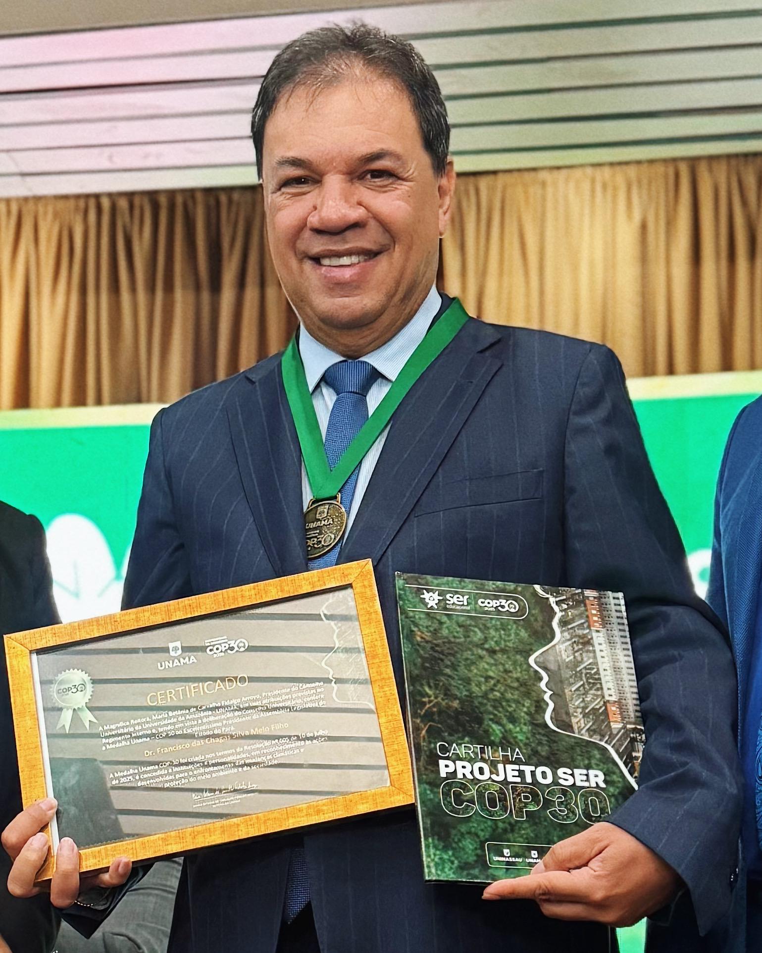 A distinção reconhece personalidades e autoridades que têm contribuído com ações voltadas à sustentabilidade, à preservação ambiental e ao fortalecimento das políticas públicas em prol da Amazônia. Além do deputado Chicão (MDB), o governador Helder Barbalho (MDB) também foi agraciado, assim como outras lideranças políticas e acadêmicas.