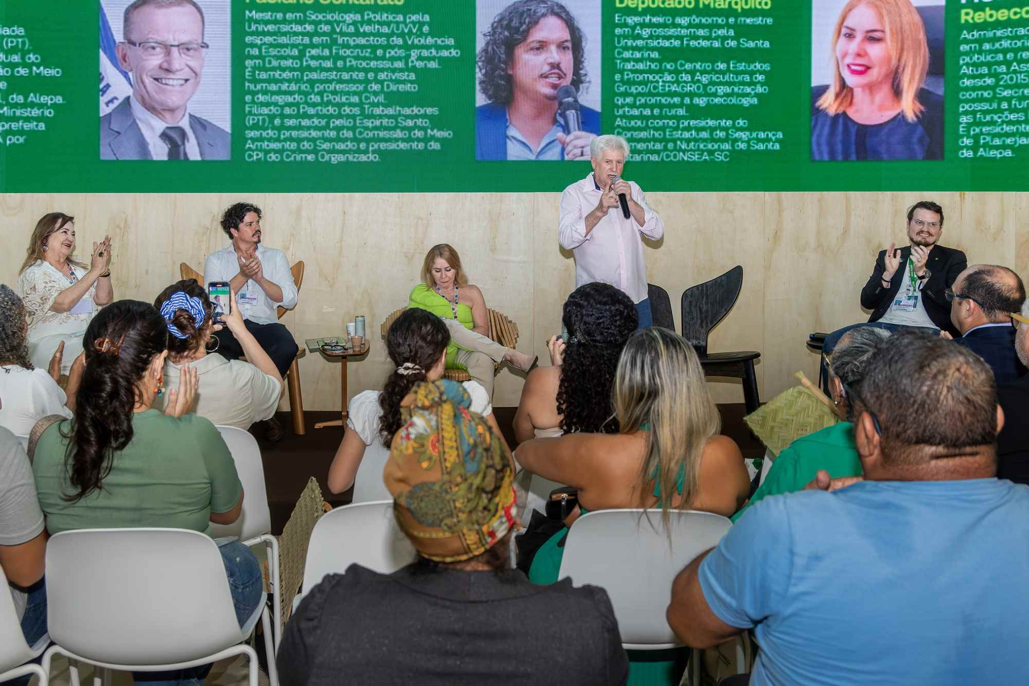 O segundo painel da manhã, “Ações Parlamentares da Amazônia no Enfrentamento à Crise Climática: Adaptação e Mitigação”, direcionado também pela deputada Maria do Carmo, teve a participação do deputado Marcos José de Abreu, mais conhecido como Marquito, da Assembleia Legislativa do Estado de Santa Catarina (Alesc); e Rebecca Hesketh, secretária legislativa da Alepa.