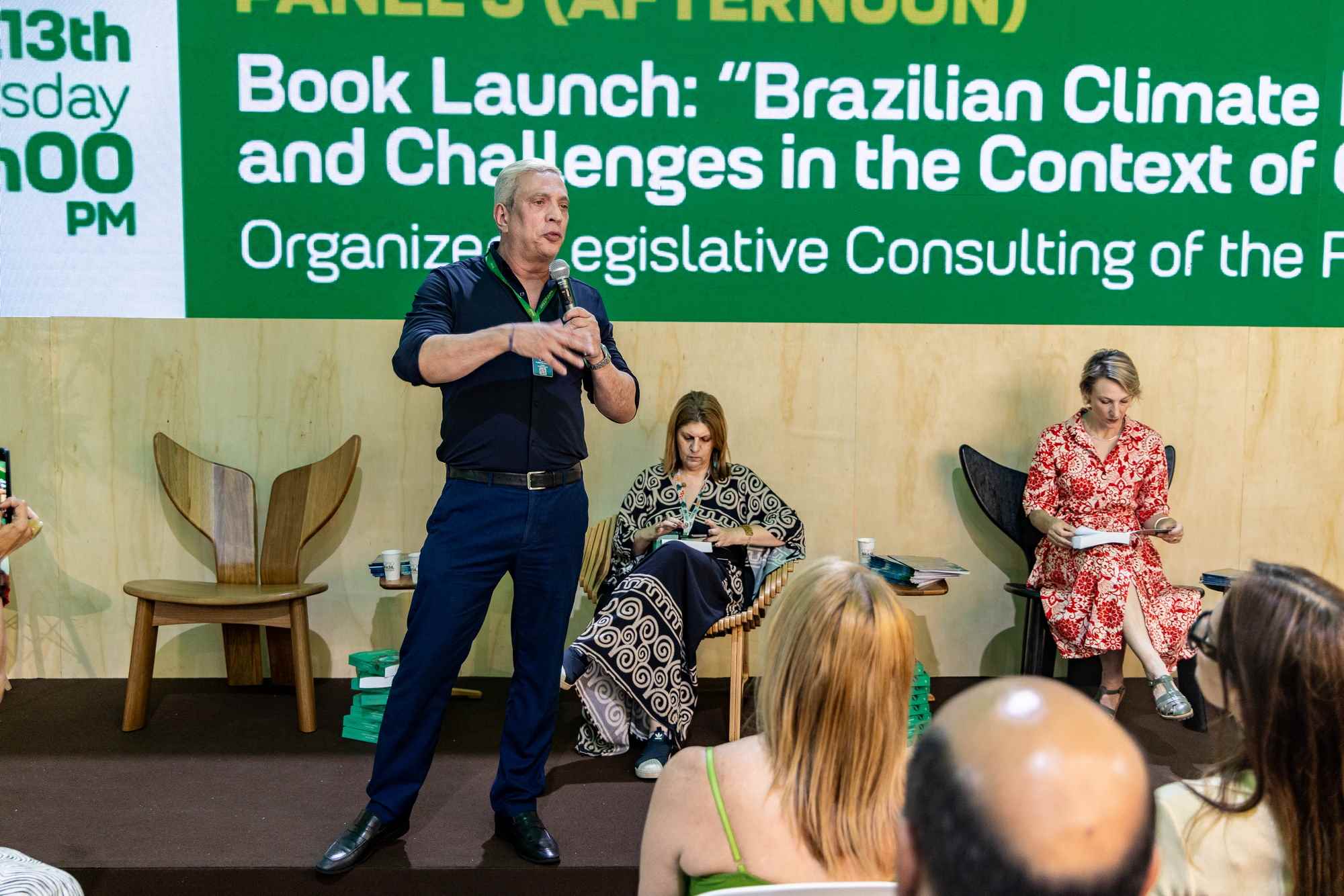 No terceiro painel, a Consultoria Legislativa do Senado foi responsável pelo pré-lançamento do livro ''A Política Climática Brasileira: Caminhos e Desafios no contexto da COP 30''. O exemplar apresenta tópicos acerca da Política Climática Brasileira e detalham sobre a Transição Energética, o acordo de Paris, e o Direito Internacional sobre Mudanças do Clima.