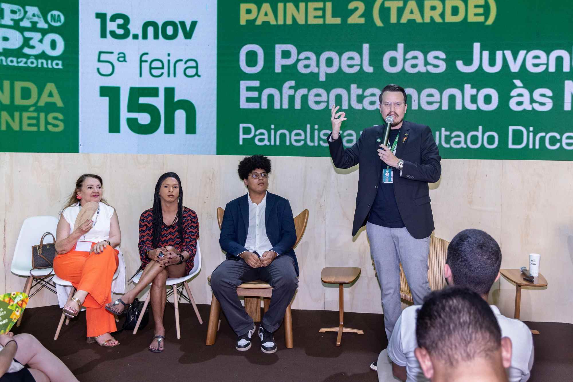 O segundo painel, conduzido pelo deputado Dirceu Ten Caten, contou com a participação da deputada Maria do Carmo e debateu com o público presente no estande ''O Papel das Juventudes no enfrentamento às Mudanças Climáticas''.