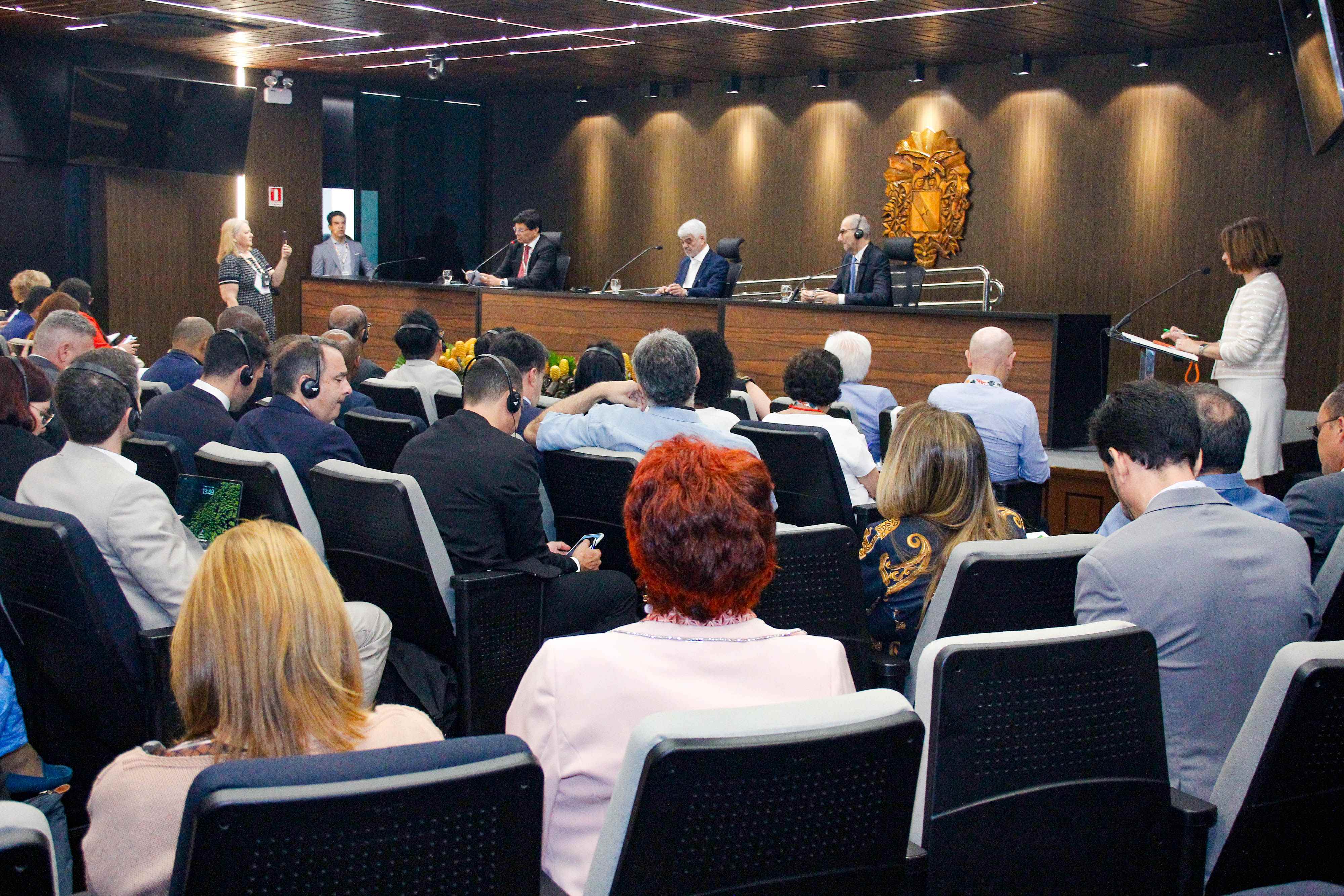 Pela manhã, dois temas foram discutidos: “Fortalecimento das Lideranças Parlamentares para a Realização das Contribuições Nacionalmente Determinadas”, com Lukas Hammer, membro do parlamento da Áustria; Nigar Arpadarai, membro do parlamento do Azerbaijão; Marianna Bolshakova, consultora jurídica no Programa das Nações Unidas para o Meio Ambiente; e Moses kajwang, membro do parlamento do Quênia.