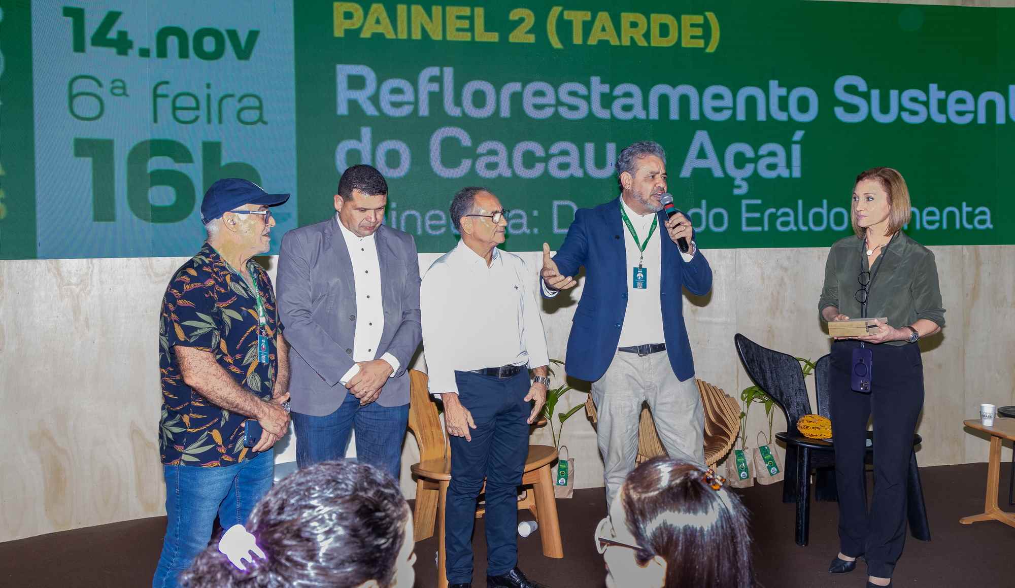 Em um foco direto na bioeconomia e na recuperação florestal, o deputado estadual Eraldo Pimenta (MDB) liderou o painel que discutiu o reflorestamento sustentável do cacau e do açaí. O debate se concentrou em como o manejo ecológico dessas culturas pode servir como uma poderosa ferramenta de desenvolvimento econômico sustentável e regeneração ambiental na Amazônia, promovendo renda e conservação ao mesmo tempo.
