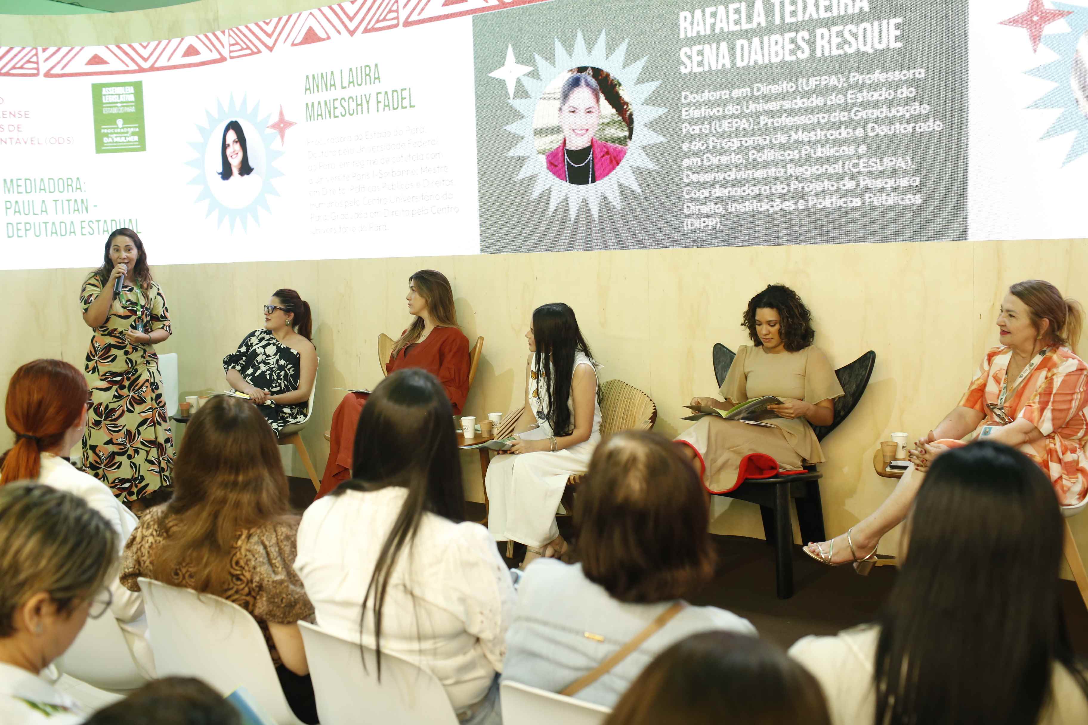 O primeiro painel do dia, apresentado pela deputada Paula Titan (MDB), abordou o tema "Legislações de Proteção e Defesa da Mulher Paraense alinhadas aos Objetivos do Desenvolvimento Sustentável - ODS" - e trata sobre uma coleção de 17 metas globais, estabelecidas pela Assembleia Geral da ONU e do Conselho Econômico das Nações Unidas com o objetivo claro de acabar com a pobreza, proteger o Meio Ambiente e garantir paz e prosperidade aos cidadãos, conciliando o progresso socioeconômico com a preservação ambiental.