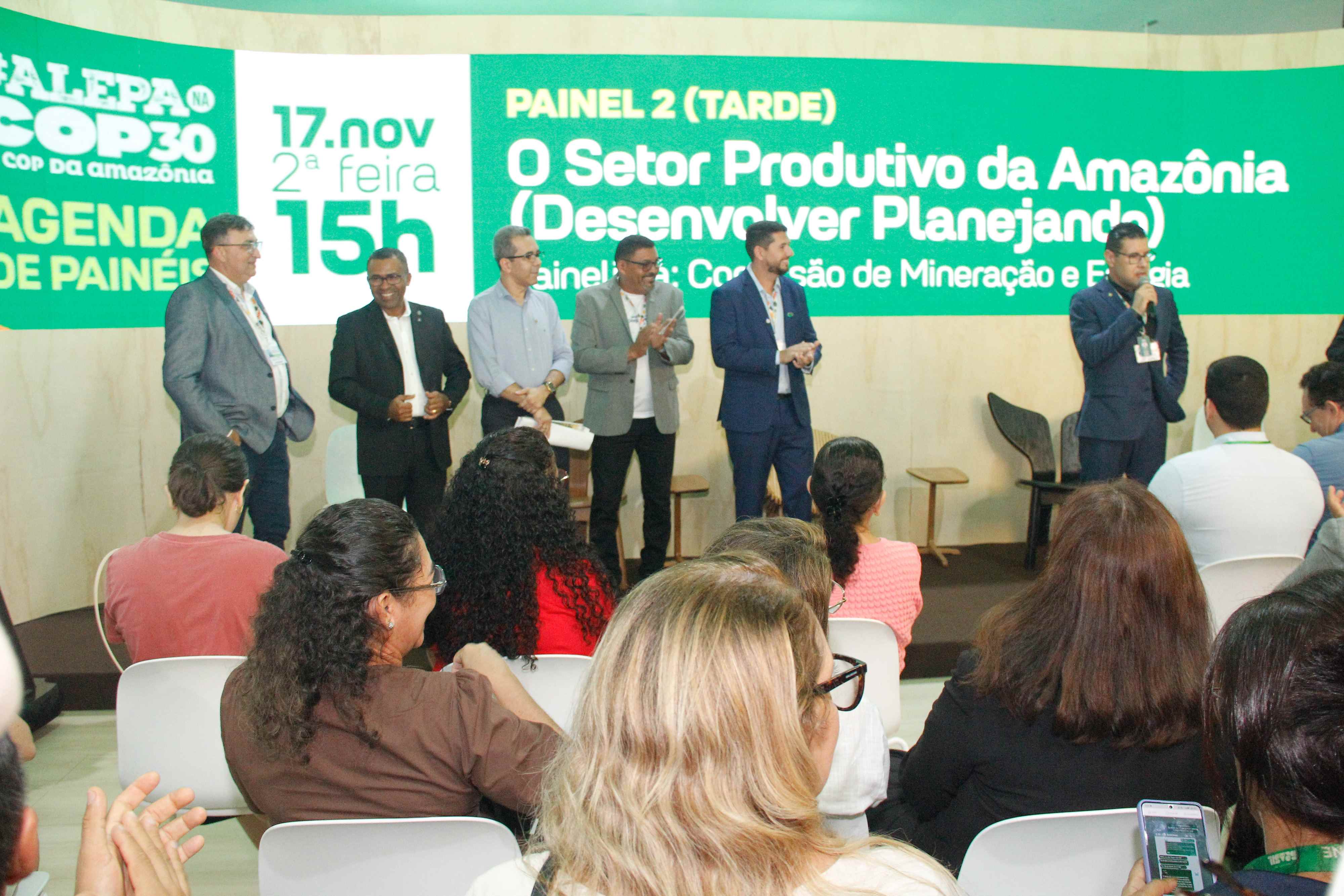 Quem finalizou as discussões foi o deputado Iran Lima (MDB), com o debate “Como a Indústria Promove a Inclusão e o Desenvolvimento Local nas Cidades”. O parlamentar teve apoio de Emerson Rocha, diretor executivo do Simineral; Deryck Martins, presidente do Conselho de Meio Ambiente da Federação das Indústrias do Estado do Pará (Fiepa); Rafael Beckman, gerente de Meio Ambiente da Brasil Iron; Carlos Ledo, Secretário de Estado de Desenvolvimento Econômico, Mineração e Energia (Sedeme).