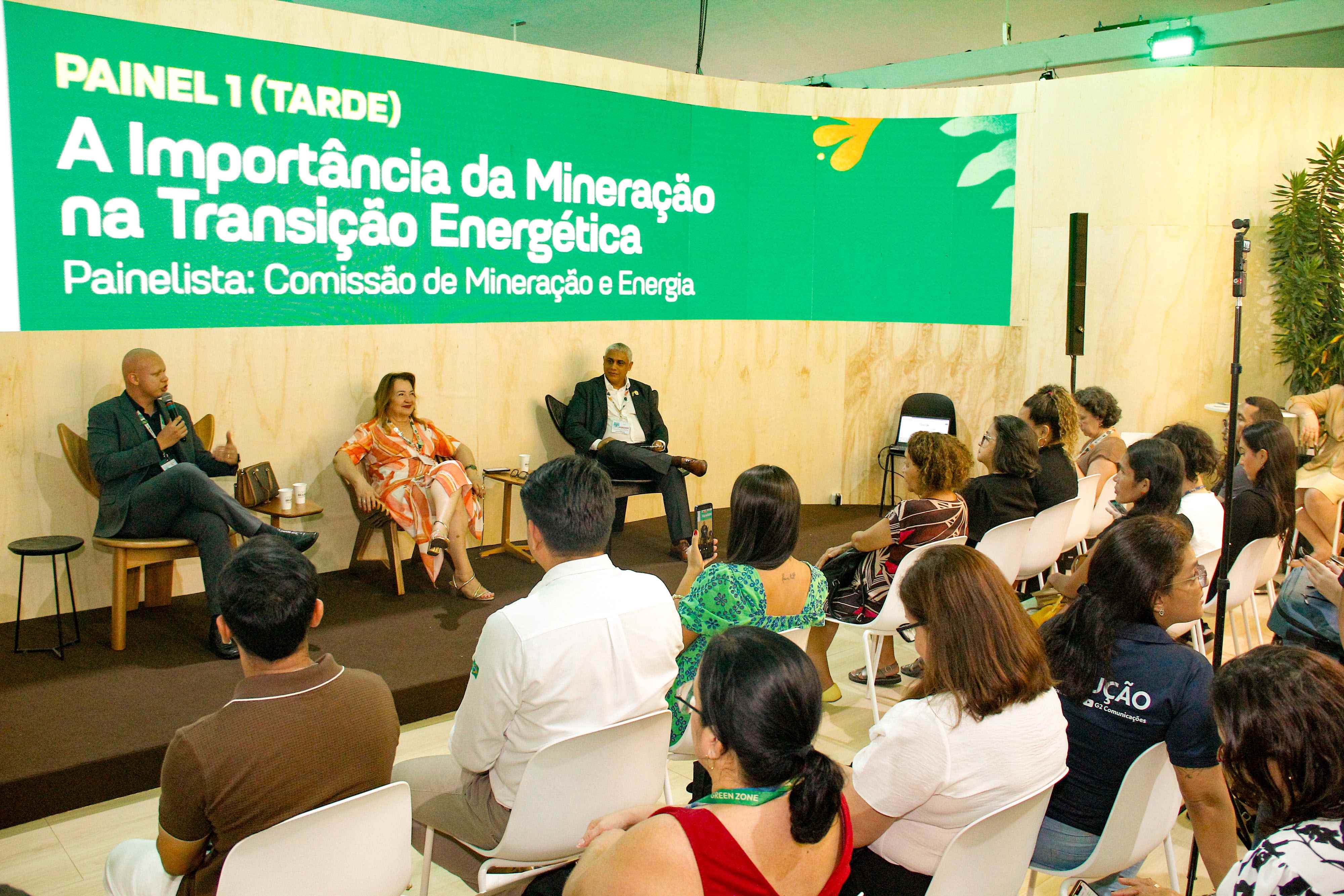 O segundo painel falou sobre “A Importância da Mineração na Transição Energética". A Comissão de Mineração e Energia da Alepa foi a responsável pelas discussões, e teve como mediadores a deputada Maria do Carmo (PT); Marcelo Moreno, da Secretaria de Estado e Meio Ambiente e Sustentabilidade (SEMAS); e Anderson Santos, representante do Instituto Brasileiro de Mineração (Ibram).