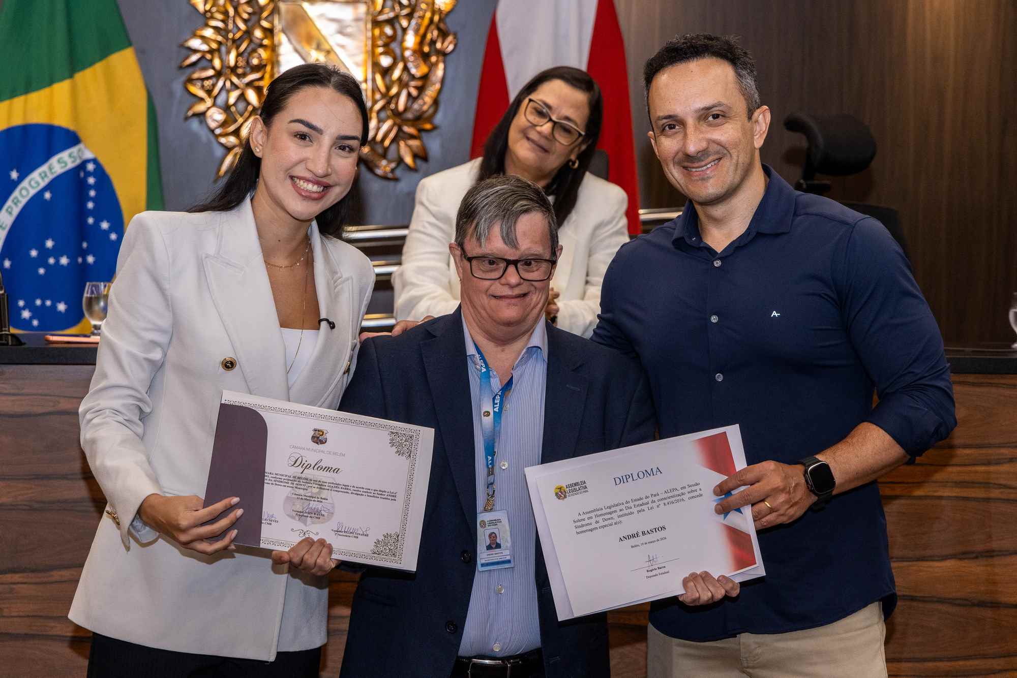 Para a presidente da APAE Belém, Nerúcia Ferreira, o combate ao preconceito é o maior desafio. “Quebrar barreiras não é fácil. Encontramos resistência na sociedade, mas aprendi que meu filho precisa ser feliz e respeitado como qualquer outra pessoa. Precisamos abraçar nossos filhos como eles são. É desafiador, mas podemos viver com alegria e promovê-la a eles”, declarou. Ao final da sessão, 44 pessoas foram homenageadas com o Diploma Especial pelos serviços prestados à causa.