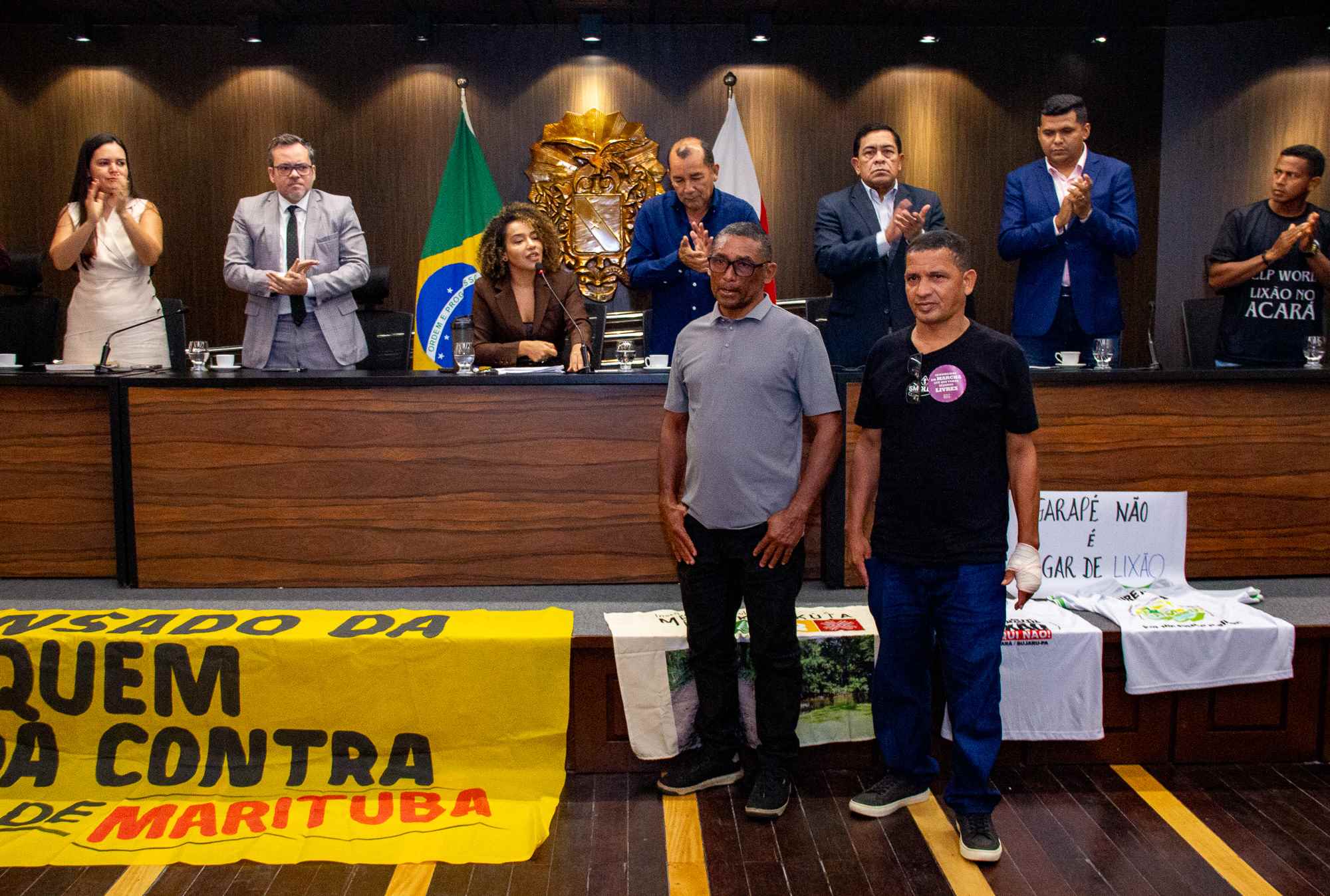 Aplaudidos de pé, os senhores André e Salim participaram da sessão após semanas de internação. Ambos foram agredidos durante uma audiência pública em Acará, no dia 20 de fevereiro, em um confronto que envolveu moradores, seguranças privados e policiais militares.