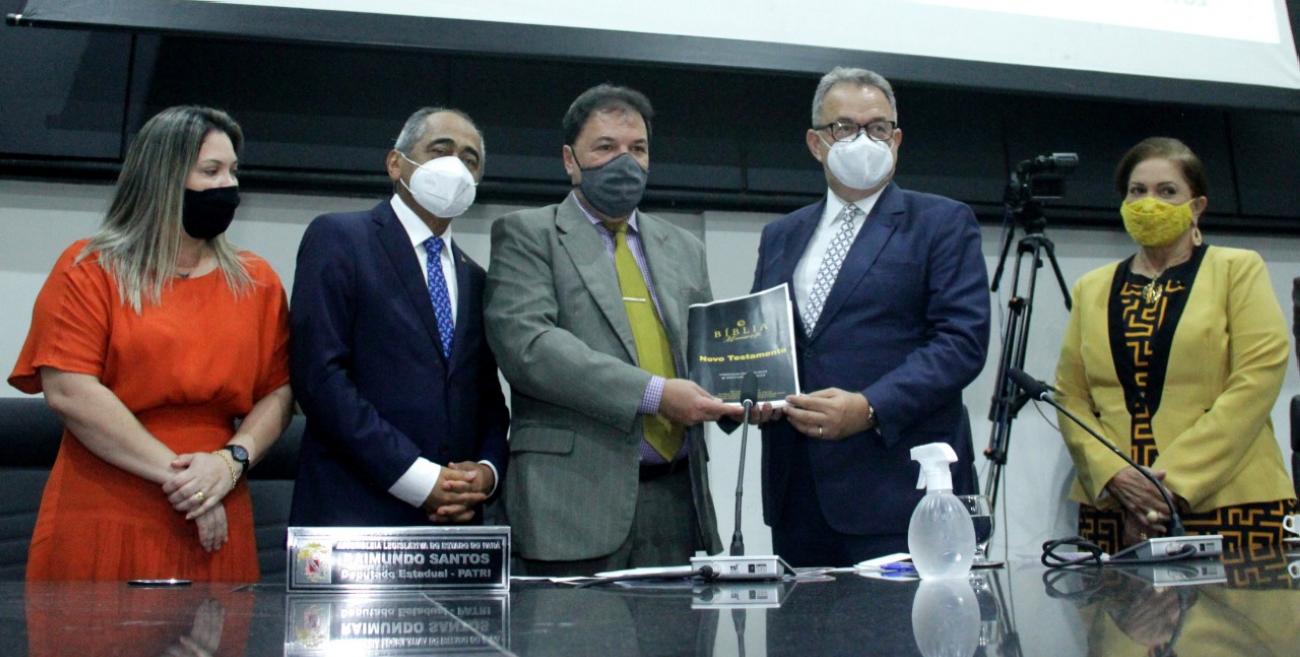 Nesse sentido, os 41 deputados também participaram, cada um escrevendo um versículo de próprio punho durante as sessões ordinárias. Na Sessão Solene, uma exemplar prévio da Bíblia contendo os escritos dos versículos dos parlamentares foi entregue ao presidente Chicão. A Bíblia será lançada na próxima sexta - feira (18) no Centenário Centro de Convenções, no culto de abertura oficial.