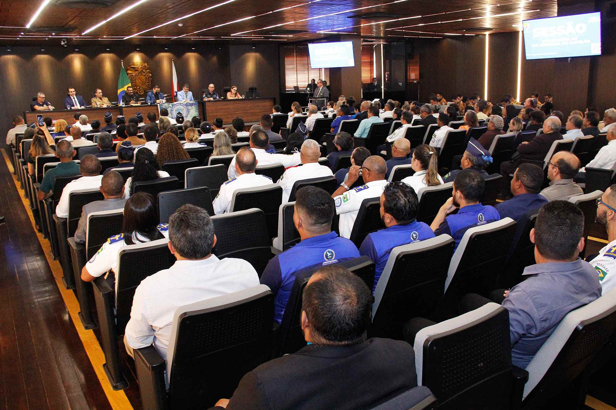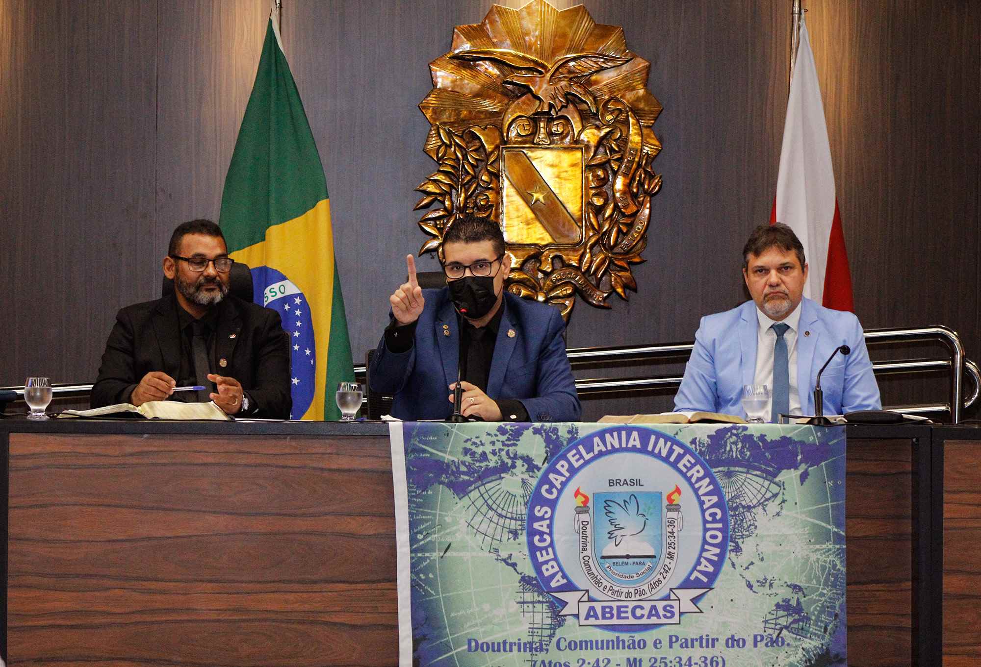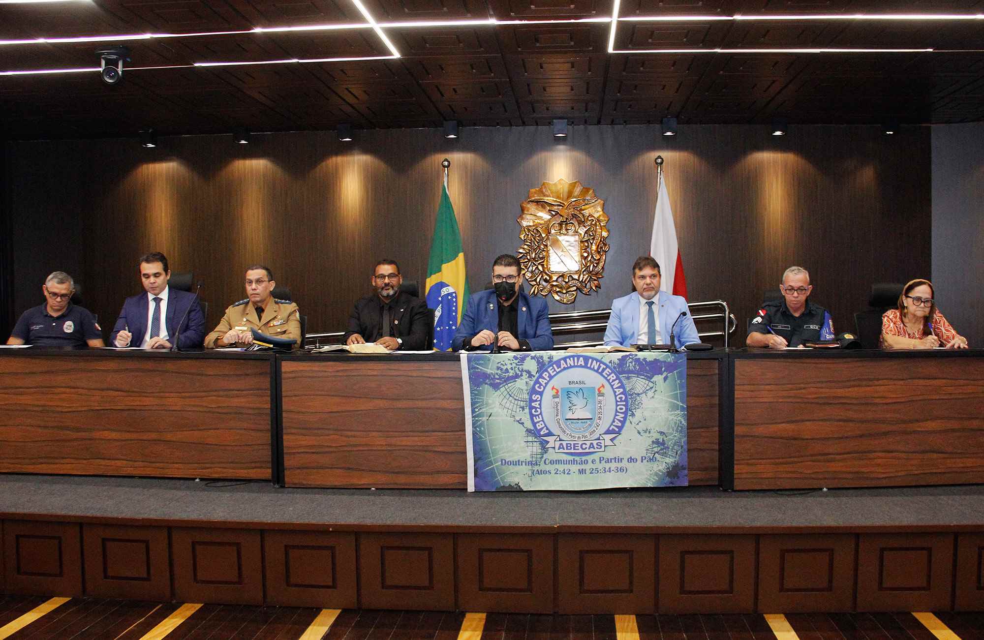 Compuseram a mesa da sessão o deputado Fábio Freitas (Republicanos); o pastor Janildo Monteiro, presidente da Associação Beneficente de Capelania Social (ABECAS) - Capelania Internacional; o pastor Adriano Casanova, representando a Sociedade Bíblica do Brasil; o capitão Sandro Martins dos Santos, representando a capelania militar do Corpo de Bombeiros; o sargento Reis Caribé, representando a capelania da Polícia Militar; Sávio Barreto, presidente eleito da OAB/PA; Ivanilda Pontes, presidente do Conselho da Comunidade da Região Metropolitana de Belém; e Valber Duarte, diretor de Reinserção Social da Secretaria de Administração Penitenciária do Pará (SEAP).