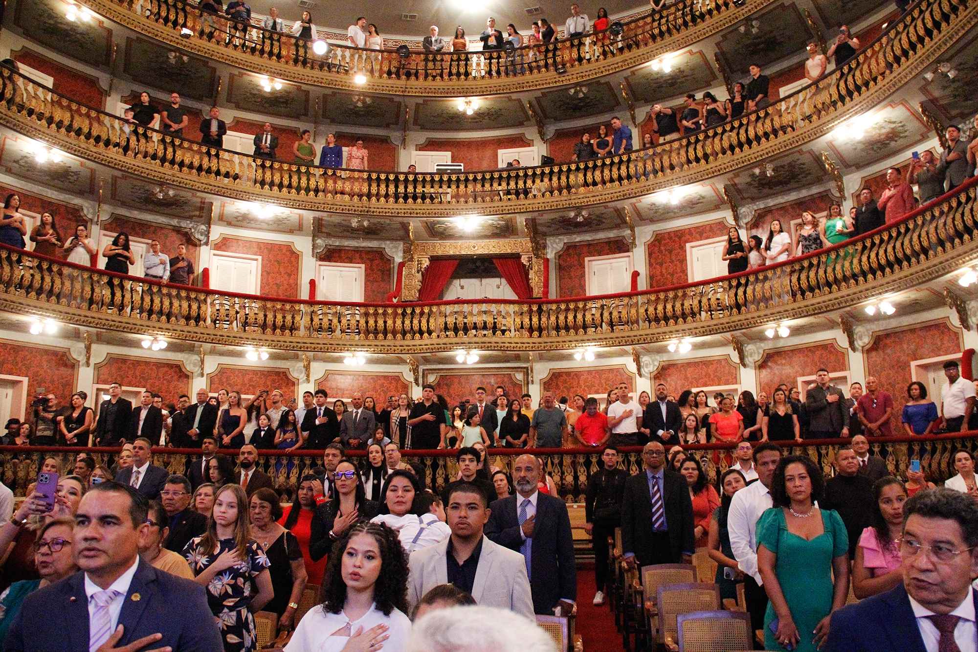O palco do Theatro da Paz foi o cenário escolhido para celebrar a formatura da primeira turma do curso superior de Tecnologia em Gestão Pública, ofertado pela Assembleia Legislativa do Pará (Alepa), por meio da Fundação Escola do Poder Legislativo (Felepa). Cento e sete servidores da instituição receberam outorga do grau superior na cerimônia, conduzida pelo presidente da Alepa, deputado Chicão.