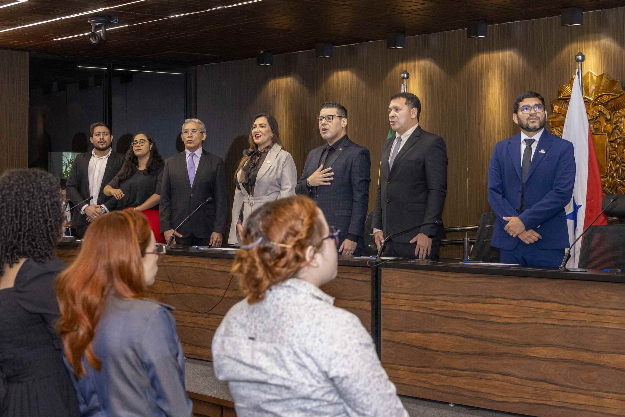 Presidida pelo deputado Fábio Freitas (Republicanos), a sessão contou com a presença dos seguintes convidados na composição da mesa: Adriana Falconeri, presidente do CREA-PA; Ruy Cabral, secretário de Obras Públicas do Pará; Júnior Tapajós, vereador de Santarém; Huan Tupinambá, coordenador do Colégio de Inspetores do CREA-PA; Milena Gonçalves, coordenadora do Crea Júnior Pará; Josué Rocha, diretor-geral da Mútua-PA; Brenda Souza, coordenadora adjunta do Programa Mulher do CREA; e Paulo Pinho, conselheiro federal do Confea.