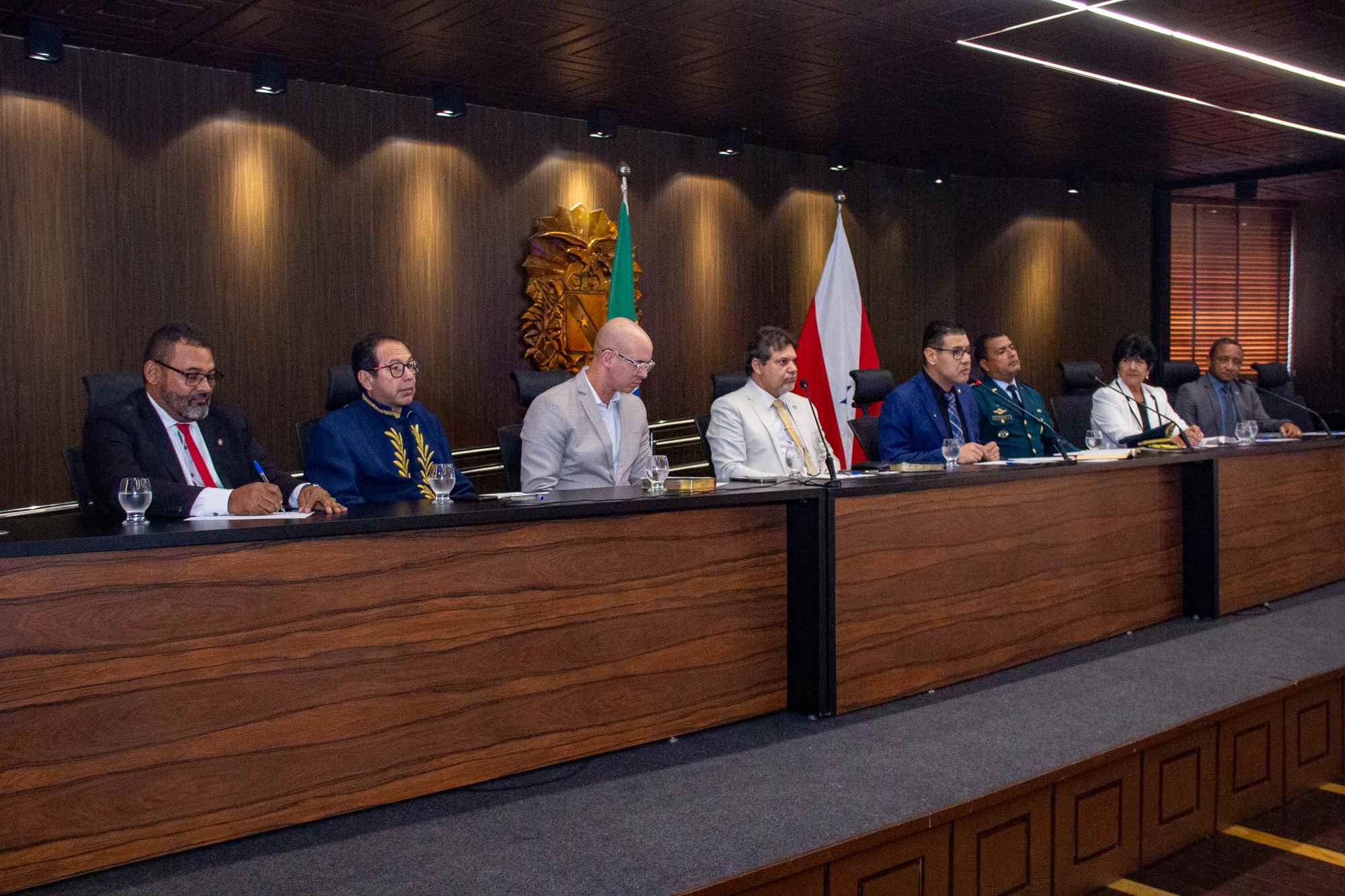 Atendendo ao convite do presidente da Sessão, deputado Fábio Freitas (Republicanos), compuseram a mesa os seguintes convidados: pastor Adriano Casanova; diretor regional da SBB no Estado; coronel Moisés, diretor do fundo de Assistência Social da Polícia Militar; Márcio Emídio, coordenador-geral da Segup/Pa; Maria José, presidente interina da SBB/PA; Jorge Paulino, presidente da Academia Evangélica de Letras; Alcides Albuquerque, chefe da capelania da Aeronáutica e Janildo Monteiro, presidente da Associação Beneficente de Capelania Social (Abecas).