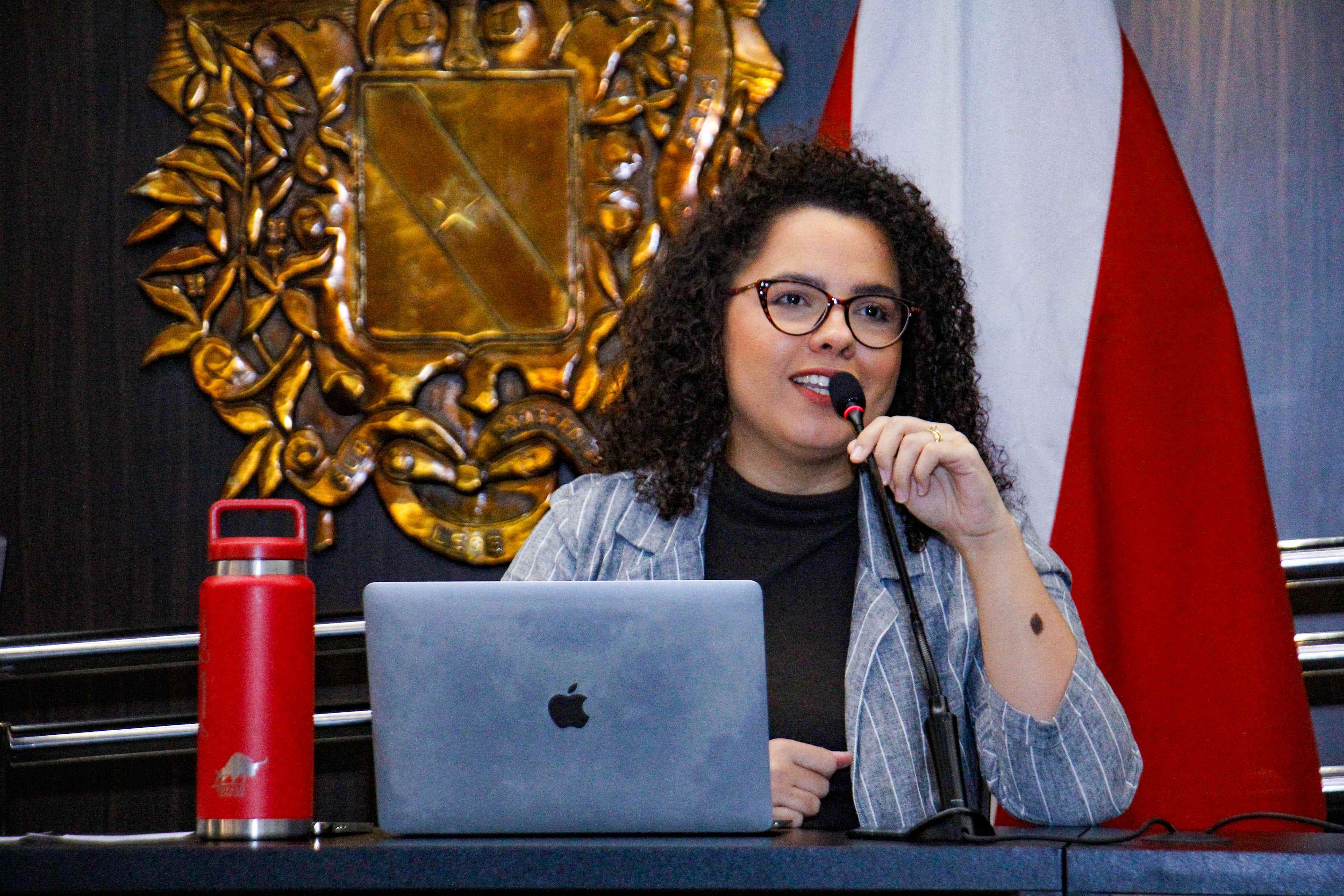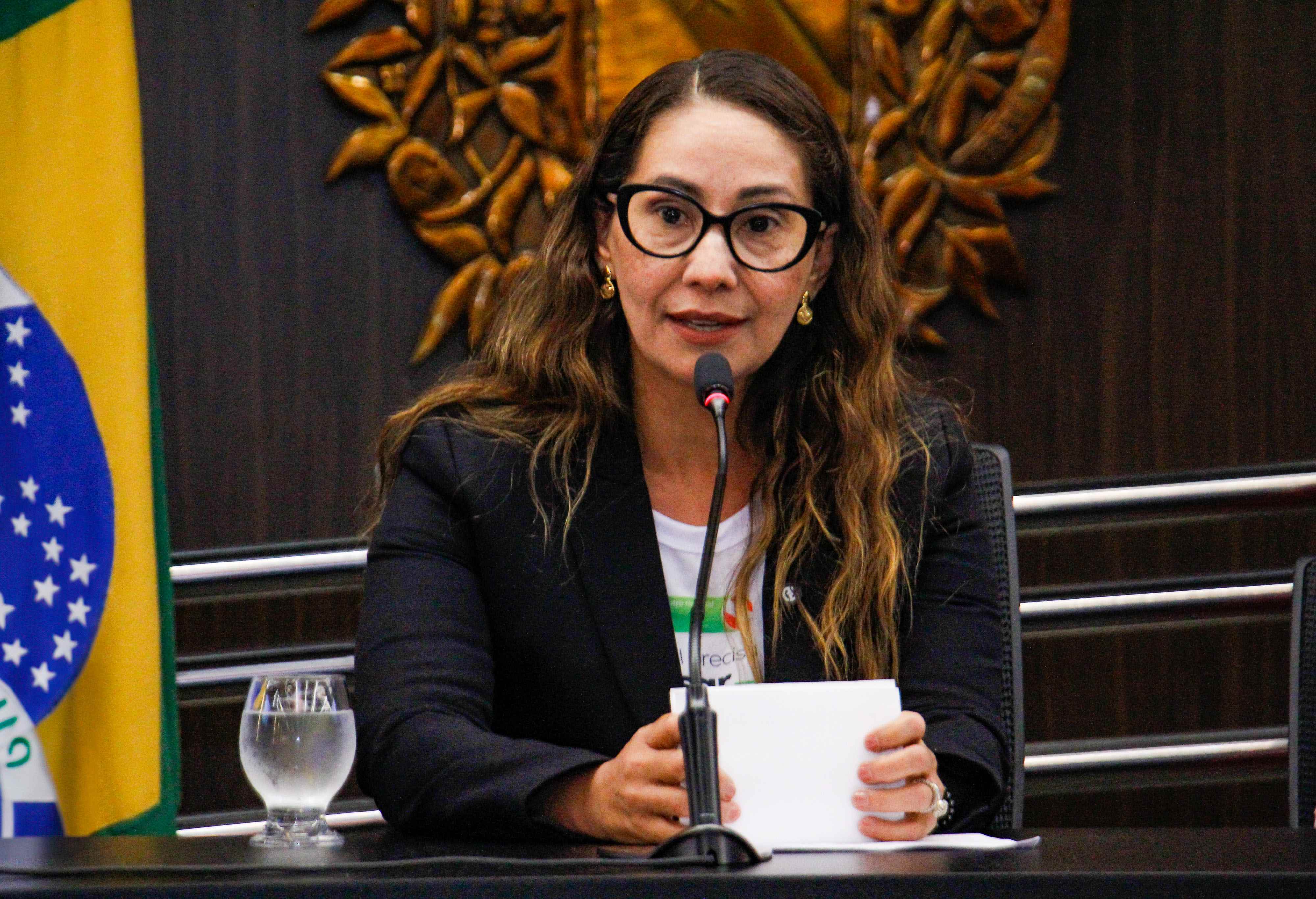 A palestrante Fernanda Queiroz Paes, apresentou o tema “Desenvolvimento sustentável na Amazônia: governança, inovação e inclusão”.