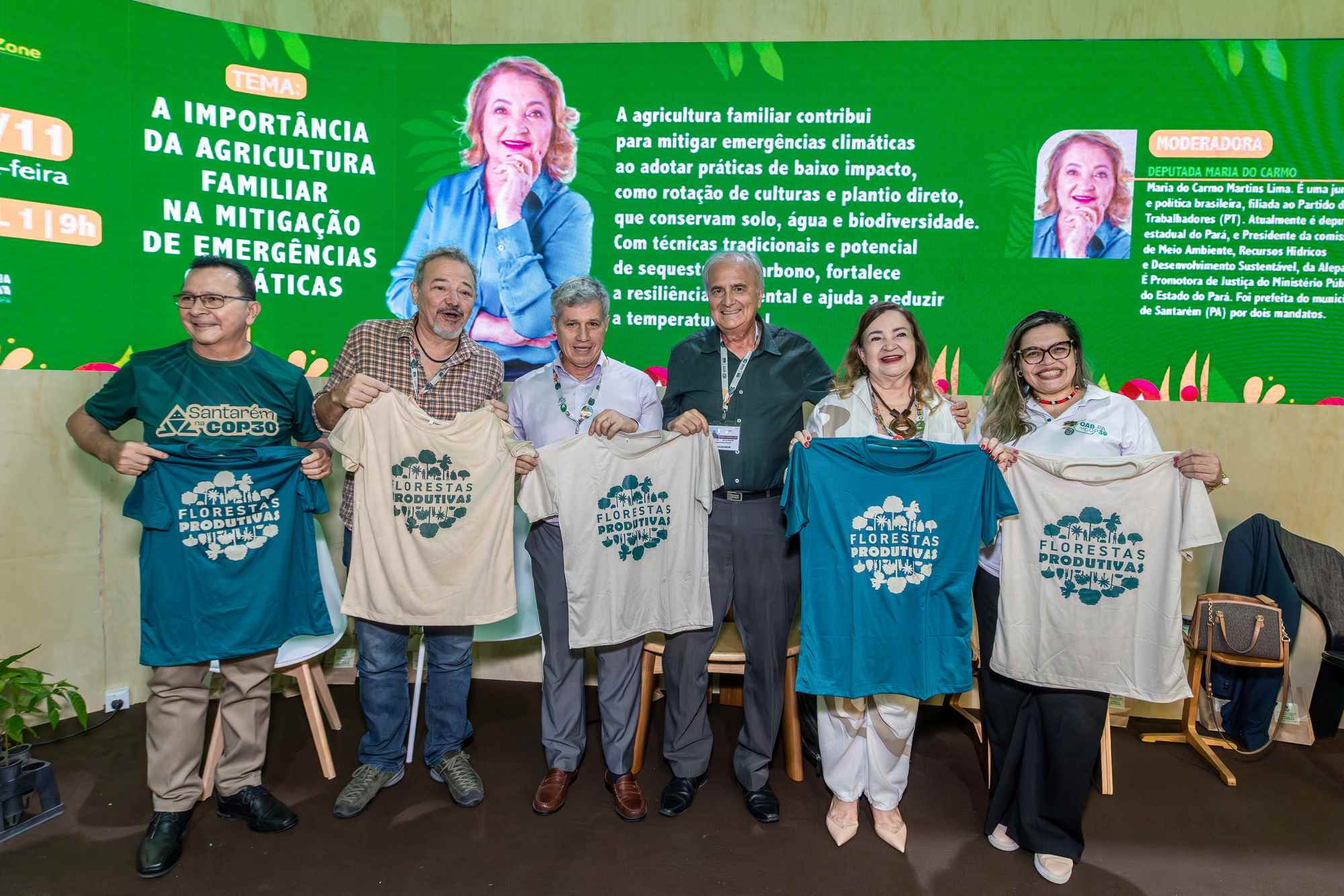 O painél sobre “A Importância da Agricultura Familiar na Mitigação de Emergências Climáticas” abriu os trabalhos do estande da Assembleia Legislativa do Pará (Alepa), na Green Zone, na manhã desta terça-feira (18). A deputada Maria do Carmo (PT), coordenou o painel, que teve como mediadores Paulo Teixeira, Ministro do Desenvolvimento Agrário e Agricultura Familiar do Brasil; Cássio Alves Pereira, Secretário de Estado da Agricultura Familiar do Pará; Caetano Scannavino Filho, empreendedor social; e José Maria Tapajós, prefeito de Santarém.