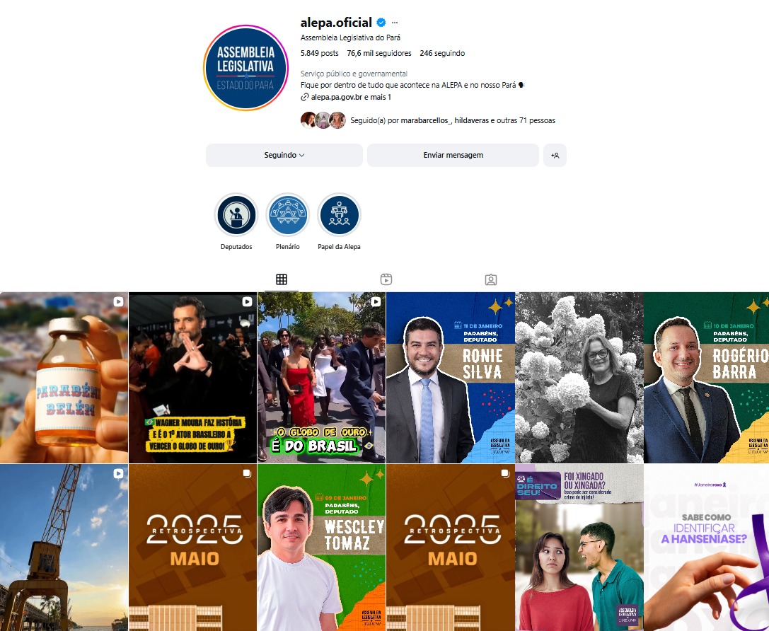 Perfil do Instagram da Alepa fecha o ano de 2025 com 15 milhões de visualizações