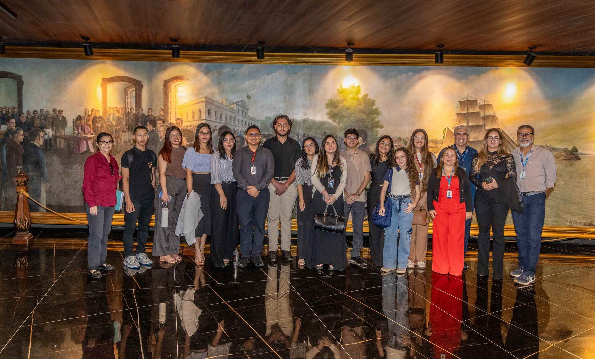 Durante o percurso, o grupo apreciou a obra das artistas Anita Panzuti e Betty Santos, que retrata a Adesão do Pará à Independência do Brasil. No Salão Nobre da Presidência, os estudantes também puderam conferir a tela que registra a primeira Assembleia Constituinte, datada de 1893.