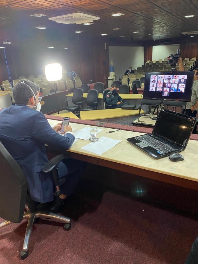Em uma sessão histórica, a Assembleia Legislativa do Estado do Pará inaugurou oficialmente o sistema de votação remota nesta quarta - feira ( 15.04). Com seis horas de duração, a Sessão Extraordinária virtual foi conduzida pelo presidente do Legislativo Estadual, deputado Dr. Daniel Santos, que usando máscara de proteção esteve no auditório João Batista, de onde conduziu os trabalhos de discussão e votação de projetos da pauta do dia.