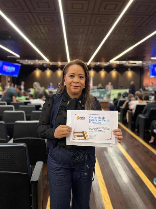 Professores e profissionais da educação do Pará receberam homenagens na manhã desta segunda-feira (16), durante a Sessão Solene de entrega da Comenda de Honra ao Mérito Educação, realizada no auditório João Batista, na Assembleia Legislativa do Pará (Alepa). Entre os agraciados, a servidora da rede estadual e municipal de ensino de Belém, Maristela Santos, indicada pelo deputado estadual Erick Monteiro (PSDB), suplente da Comissão de Educação da Alepa.