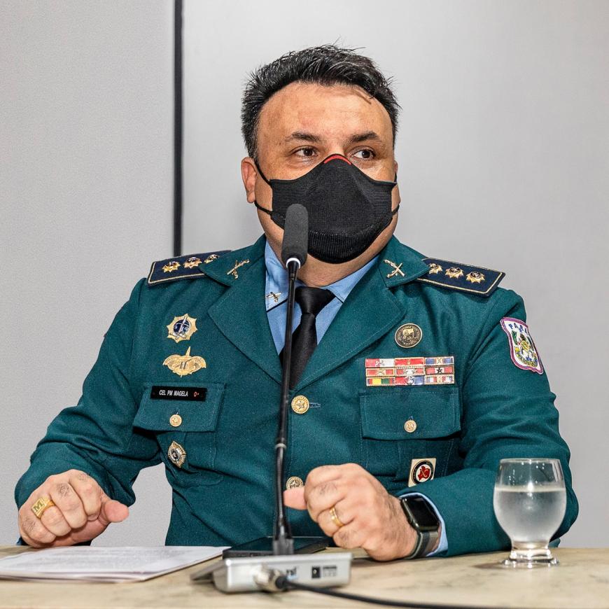 Representando o Comando-Geral da Polícia Militar do Pará, esteve presente e compondo a Mesa Oficial, o Chefe de Gabinete da corporação, Coronel QOPM Ubirajara Magela de Sousa Falcão.