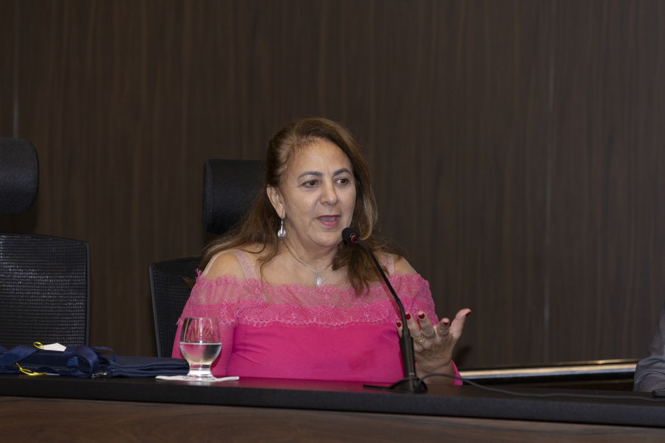 Iana Barcessat Pinto usou o espaço de fala durante a formação da mesa para falar sobre a importância de se falar sobre os 200 anos da história do povo judeu no Estado, e do papel da mulher dentro do trabalho da comunidade.