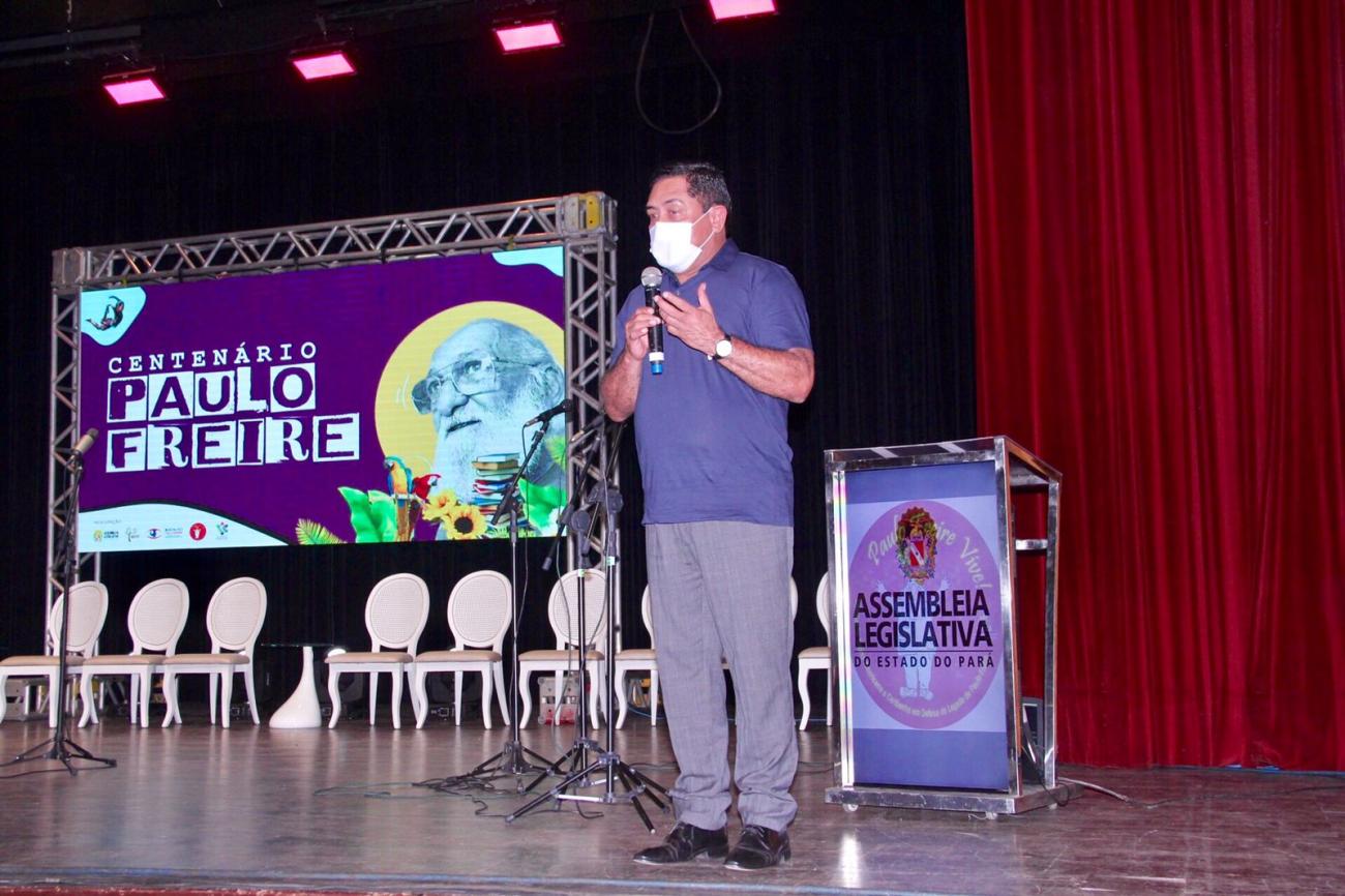 Em seguida, o parlamentar se dirigiu ao pavilhão dos estandes. O deputado Carlos Bordalo manifestou sua alegria em vivenciar aquele momento com uma programação dedicada à obra e em homenagem ao centenário de Paulo Freire. "Eu espero que hoje e amanhã possamos fazer o nosso clamor ecoar no Estado do Pará, no Brasil e no mundo, dizendo não a barbárie e sim a civilização", disse.
